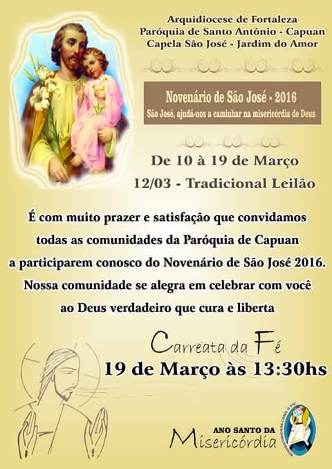 Amanhã, dia 19 de março, Dia de São José, acontecerá o encerramento da festa de São José com tradicional carreata da Fé que percorrerá as comunidades da paroquia.