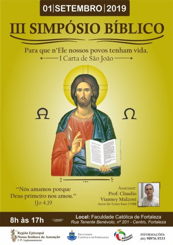 Dando continuidade ao ciclo do tema “Para que n’Ele nossos povos tenham vida” a Igreja no Brasil propôs para o Mês da Bíblia o estudo da Primeira Carta de São João. E para nossa alegria, este ano o Simpósio Bíblico contará com a Assessoria e didática pedagógica do autor do texto-base da CNBB: Professor Cláudio Vianney Malzoni, de Recife-PE.